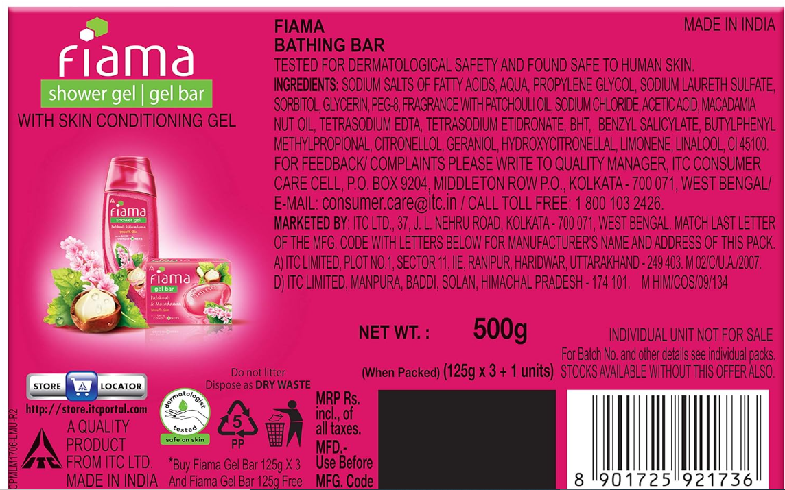 Fiama Di Wills Patchouli & Macadamia Soft Glowing Skin Gel Bar, 125g (Buy 3 Get 1 Free)
