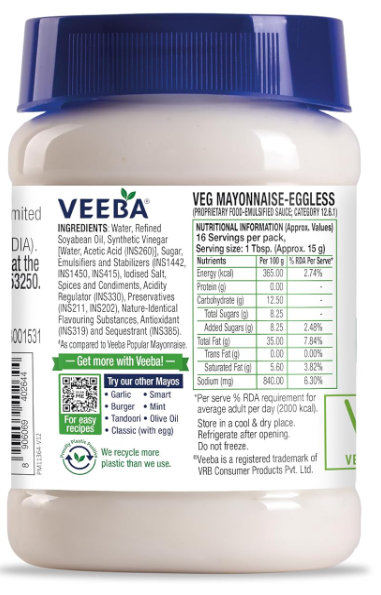 VEEBA MAYONNAISE EGGLESS 300 GM